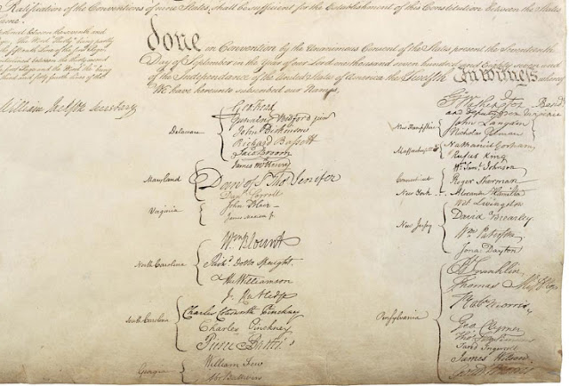 On September 17, 1787, the Constitution of the United States of America is signed by 38 of 41 delegates present at the conclusion of the Constitutional Convention in Philadelphia. Supporters of the document waged a hard-won battle to win ratification by the necessary nine out of 13 U.S. states.